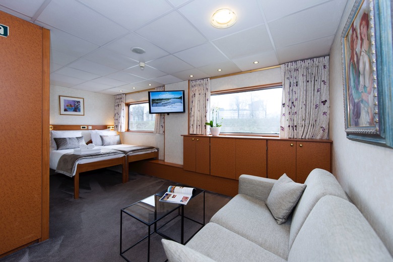 The lounge tastefully decorated, is located at the front of the ship and offers panoramic views. Cocktails and games, dancing, and other forms of entertainment all happen here.
